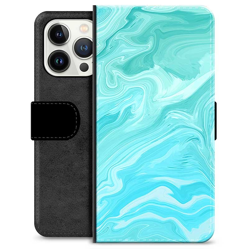iPhone 13 Pro Premium Lommebok-deksel - Blå Marmor