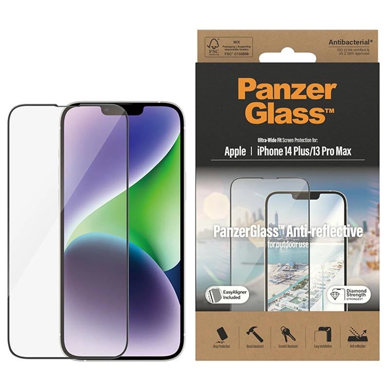 PanzerGlass Ultra-Wide Fit Anti-Reflective EasyAligner AntiBacterial Skjermbeskytter i Herdet Glass til iPhone 13 Pro Max, iPhone 14 Plus
