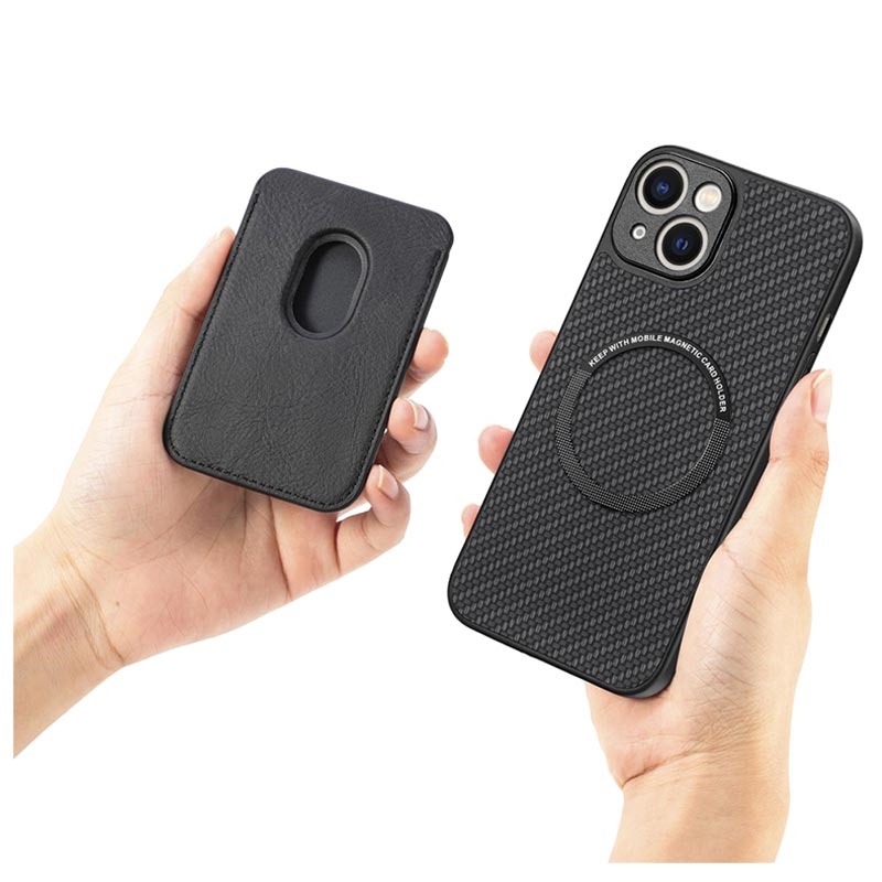 Magnetisk Deksel med Kortlomme til iPhone 14 - Karbonfiber
