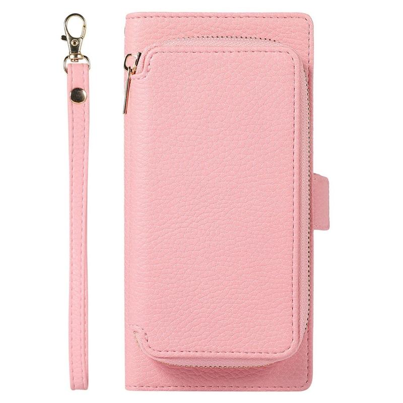- Kortvesken med glidelås og litchi teksturert mobiltelefonskinnveske kan deles for bruk og festes sammen med magnetisme