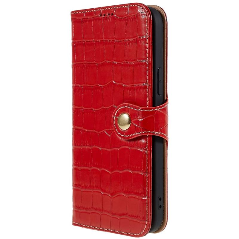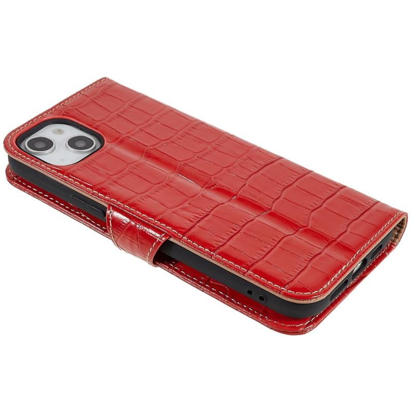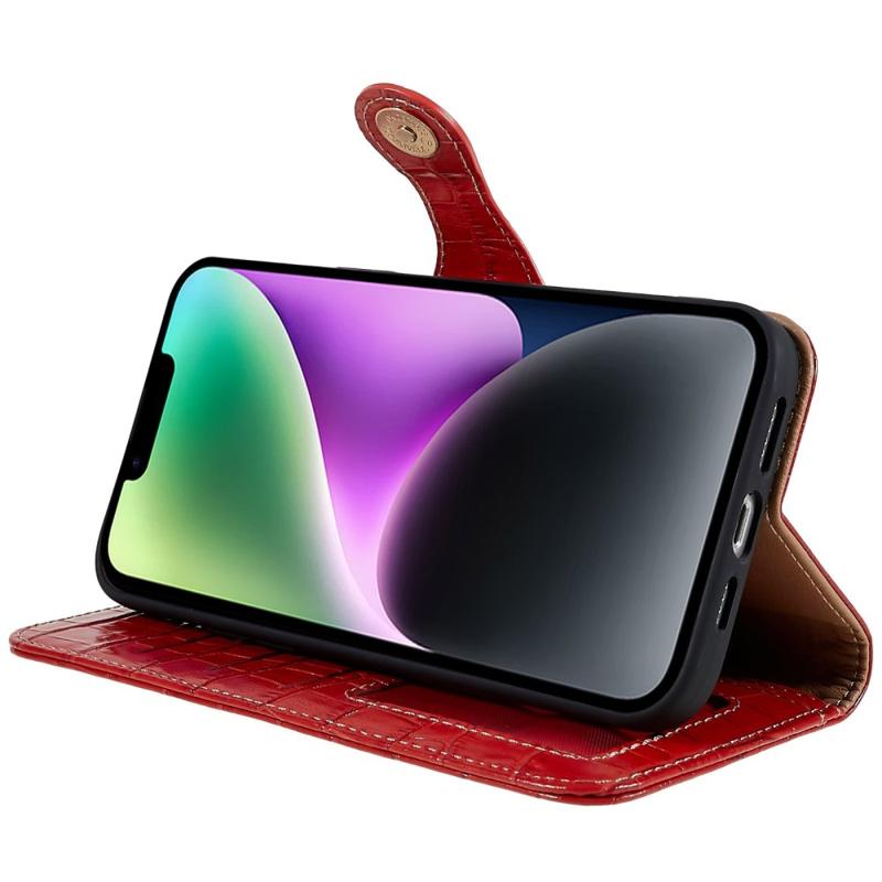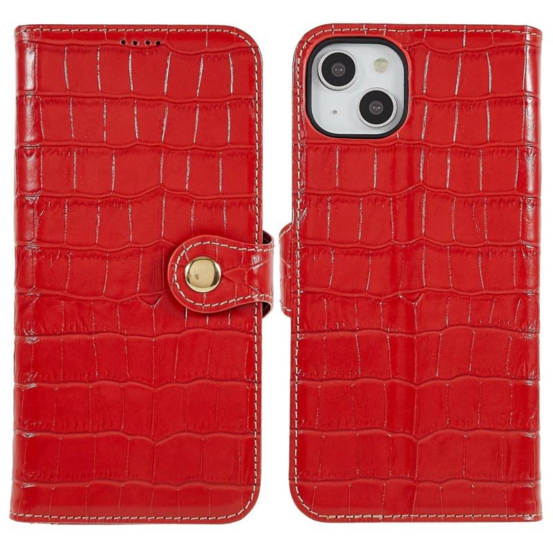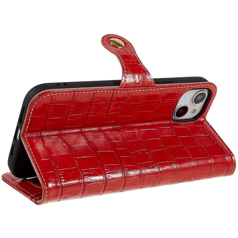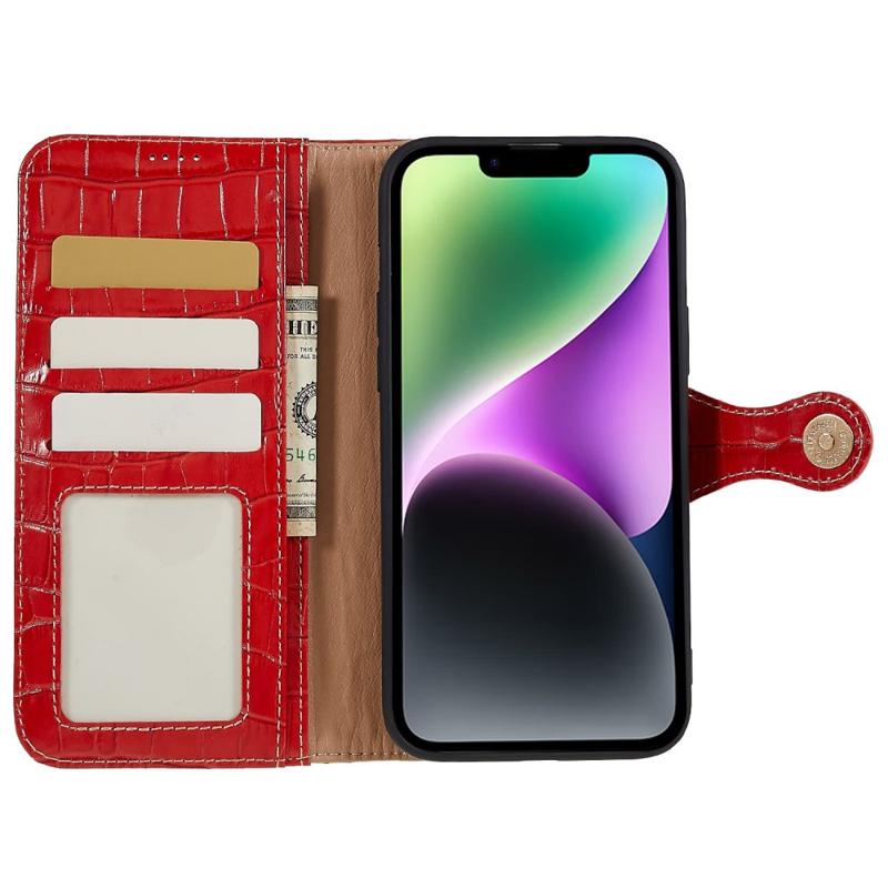 For iPhone 14 Plus ekte okseskinn Anti-slipp telefonveske Crocodile Texture Stand Full Protection Flip Wallet Cover