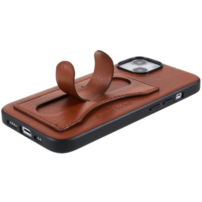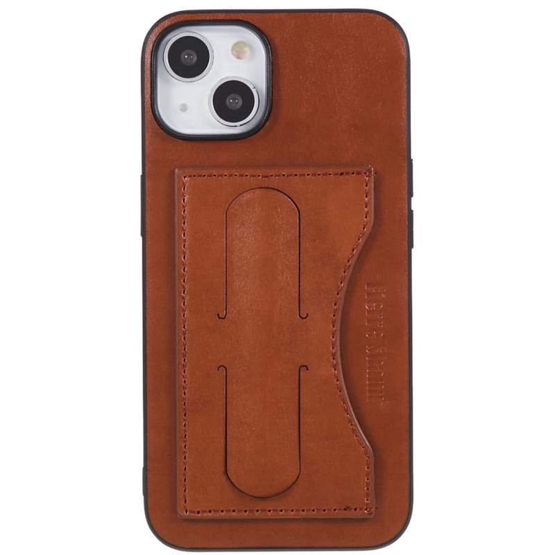 Kickstand Design-bakdeksel for iPhone 14 Plus PU-skinnbelagt TPU-telefonbeskyttelsesdeksel med kortspor