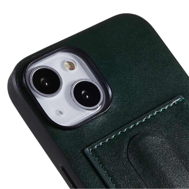 Kickstand Design-bakdeksel for iPhone 14 Plus PU-skinnbelagt TPU-telefonbeskyttelsesdeksel med kortspor
