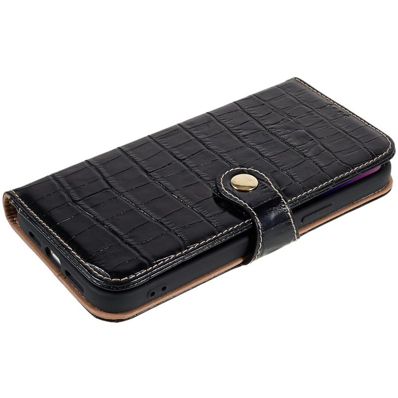 Dette etuiet er laget av ekte okseskinn med krokodilletekstur som er slitesterkt, glatt og mykt. Slim fit TPU-materialer gjør telefonen din lett å bære og enkel å installere. Det innebygde kortsporet er enkelt å organisere kontantpengene dine.