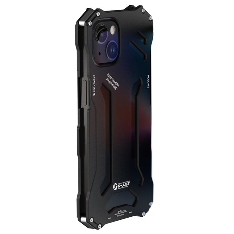 R-JUST Mechanical Armor Metal Støtsikkert deksel til iPhone 14 Plus Anti-Fall telefondeksel Hult Design Telefonbeskytter