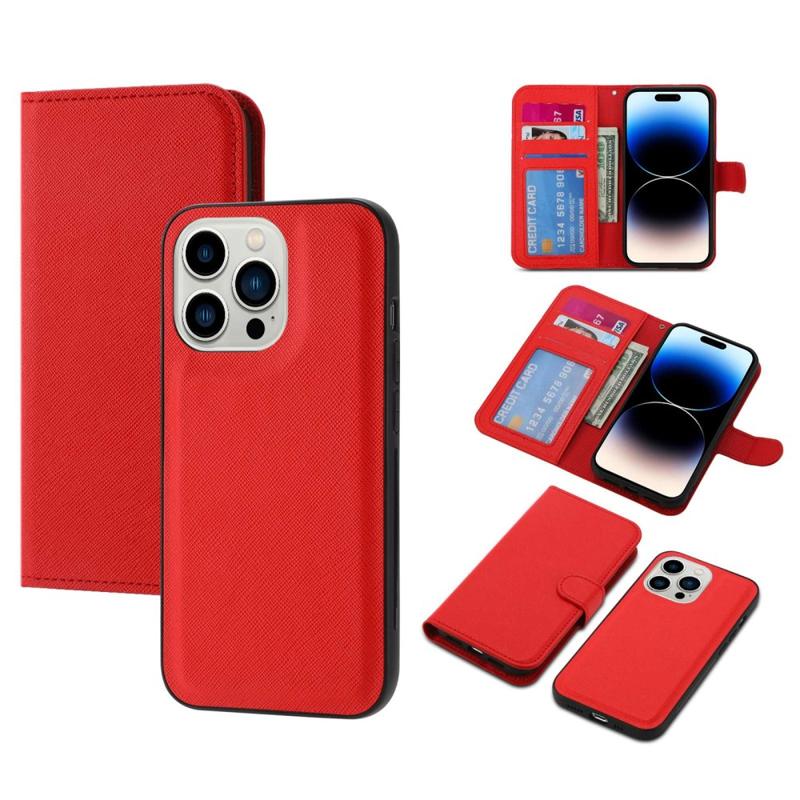 For iPhone 14 Pro Avtagbart TPU-bakdeksel Cross Texture PU-skinn Drop-proof deksel Flip Stand Lommebokskall