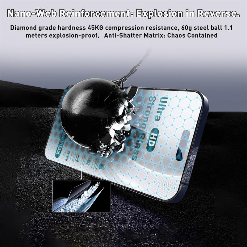 Beskytt din iPhone 14 Pro Max med denne skjermbeskytteren i herdet glass med høy definisjon, som er designet for å kombinere førsteklasses holdbarhet med enkel montering. Det medfølgende verktøyet for automatisk støvfjerning og kantpressing sikrer en boblefri, perfekt passform hver gang.