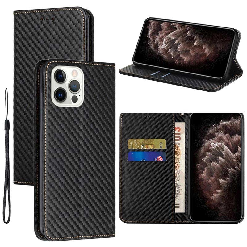 - Iøynefallende lommebokdeksel i karbonfiber til iPhone 14 Pro