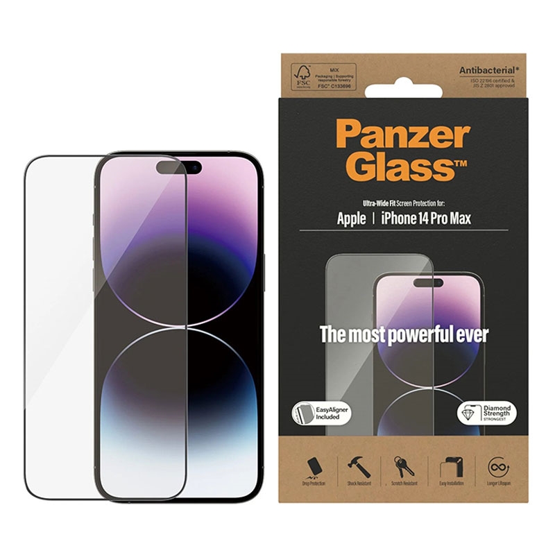 iPhone 14 Pro Max PanzerGlass Ultra-Wide Fit EasyAligner Hærdet Glas med sort kant er den ultimative beskyttelse til din smartphone... Dette hærdede glas er designet til at give maksimal beskyttelse mod ridser, stød og andre daglige skader, samtidig med at det bevarer skærmens klarhed og touch-følsomhed. Med EasyAligner-funktionen er installationen nem og præcis, hvilket sikrer en perfekt pasform hver gang.