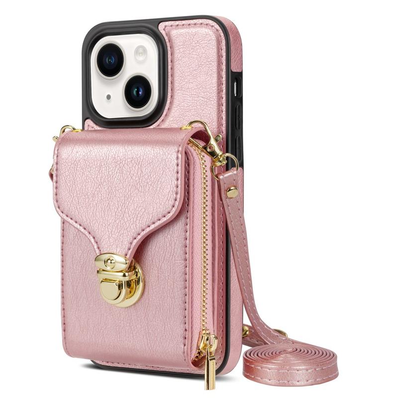 Alt-i-ett beskyttende TPU-deksel med lommebok og stropp til iPhone 15