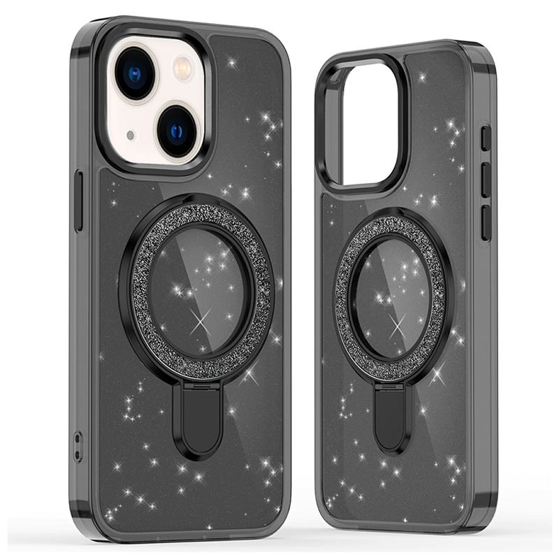 Glitter-deksel med kickstand for iPhone 15 - MagSafe-kompatibelt TPU + PC Hybrid Kickstand-deksel
