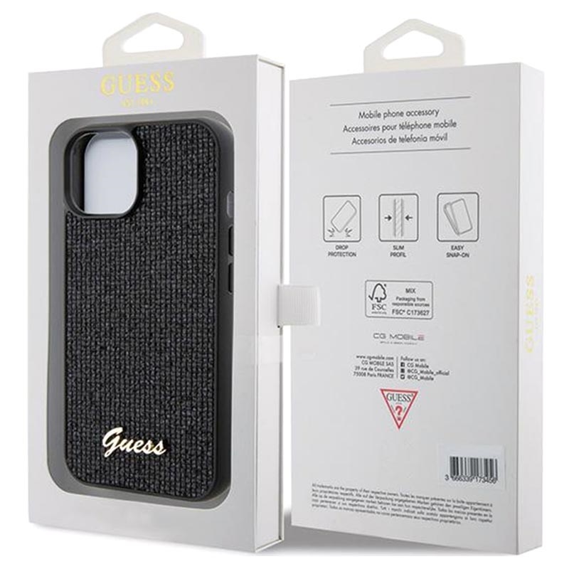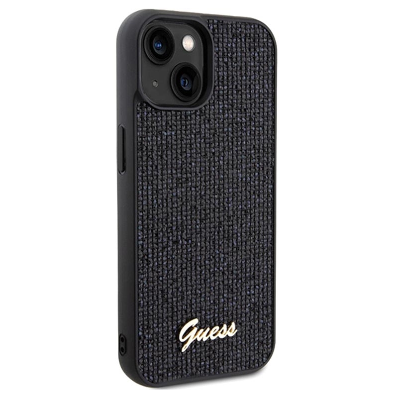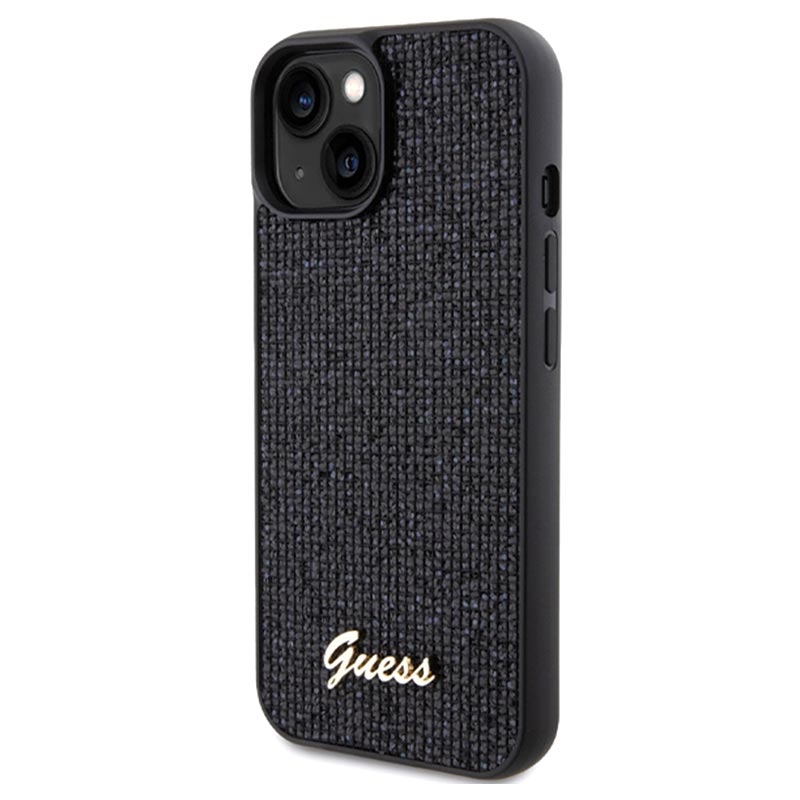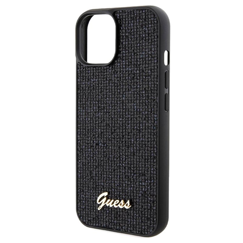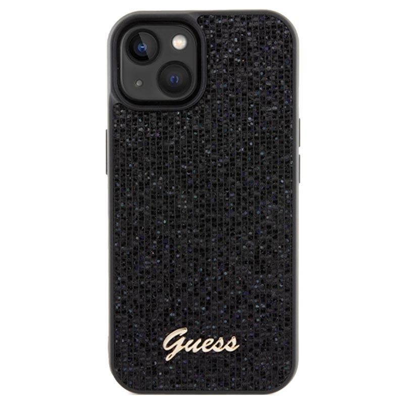 iPhone 15 Guess Disco Metal Script Logo Deksel - Svart