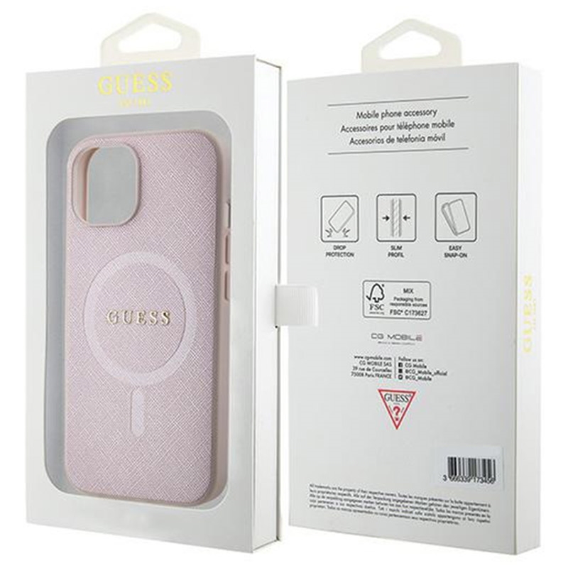 Guess Saffiano Hybrid-deksel til iPhone 15 - MagSafe-kompatibelt