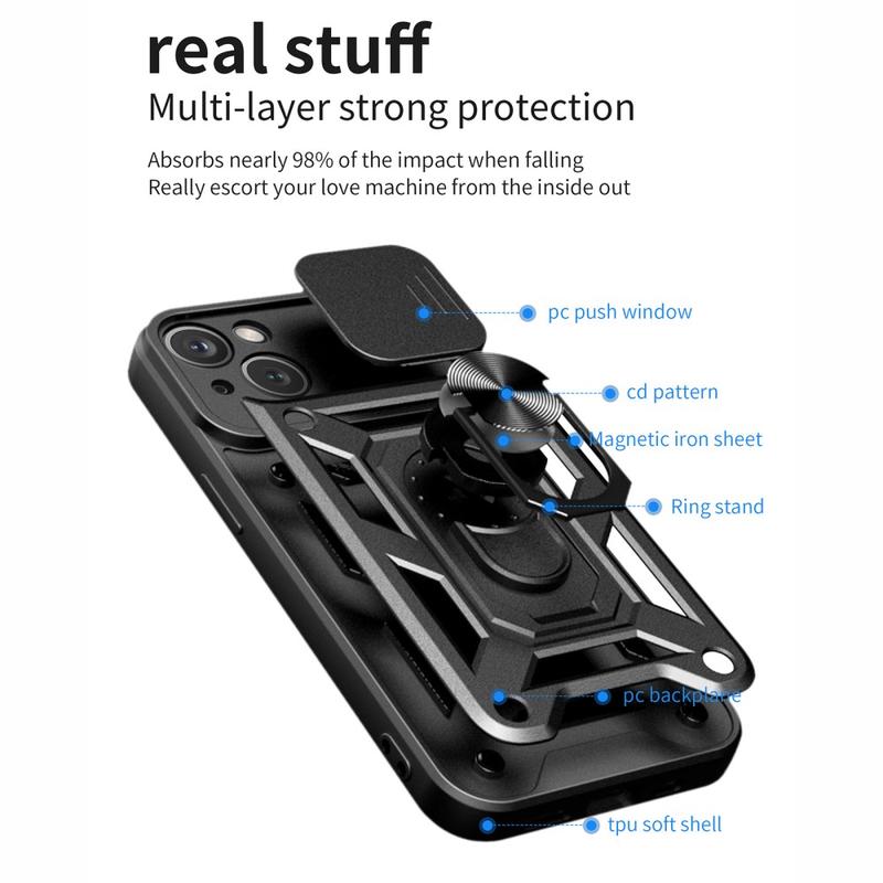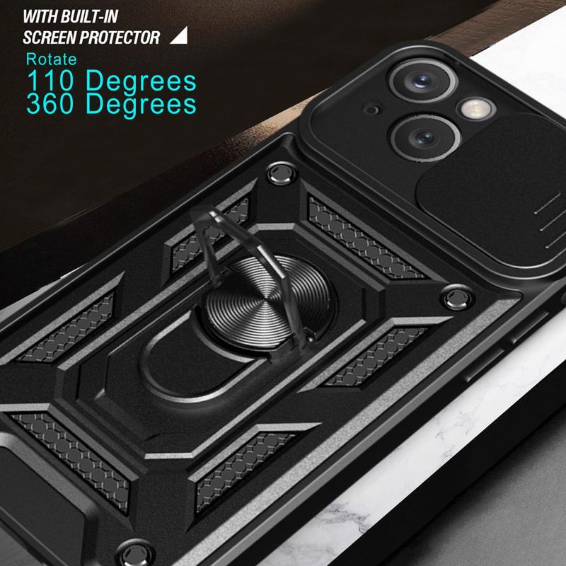 - Roterende ring hybridetui med kameraavskjerming for iPhone 15