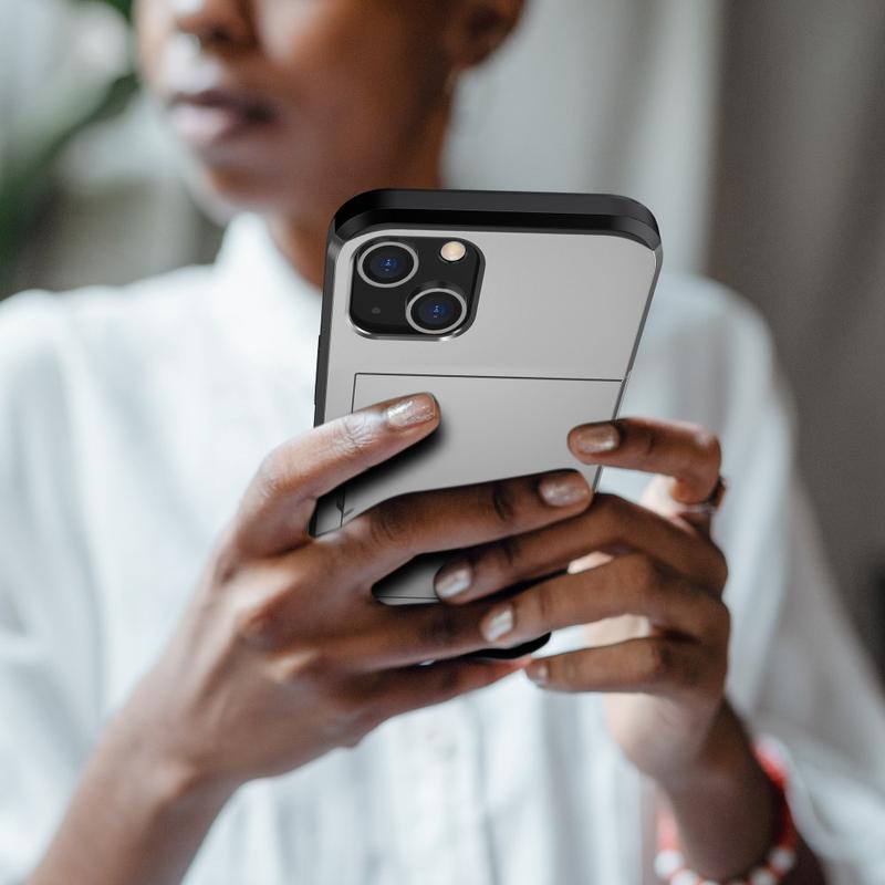 Denne innovative iPhone 15 hybriddekselet kombinerer sømløst førsteklasses beskyttelse med praktisk funksjonalitet, og gjør det til det perfekte tilbehøret for din iPhone 15. Oppbevar trygt ID-kortet ditt, kredittkortet eller annet i det diskrete rommet på baksiden av dekselet, med en skyvemekanisme som forhindrer at kortene dine utilsiktet faller ut.