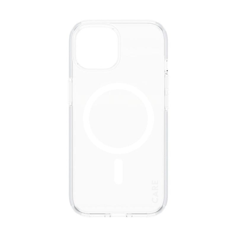CARE by PanzerGlass Flagship Case for iPhone 15 kombinerer stil og robust beskyttelse. Dette etuiet er laget av 100 % resirkulert plast og har fallbeskyttelse, ripebestandighet og støtdemping av militær klasse. Det gjennomsiktige designet med svart MagSafe-kompatibilitet sørger for at iPhone 15 forblir stilig mens den lades trådløst.