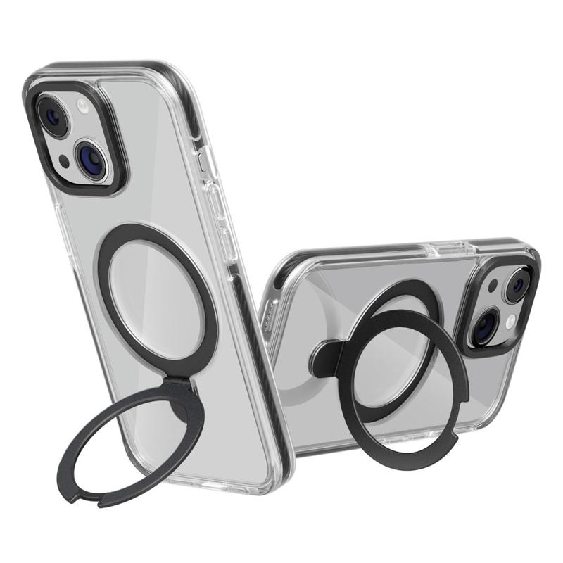 iPhone 15 Plus Anti-riper TPU + akryl baksidedeksel kompatibel med MagSafe Kickstand Clear Phone Cover - Svart
