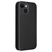 - Karbonfiber teksturert flip-deksel til iPhone 15 Plus