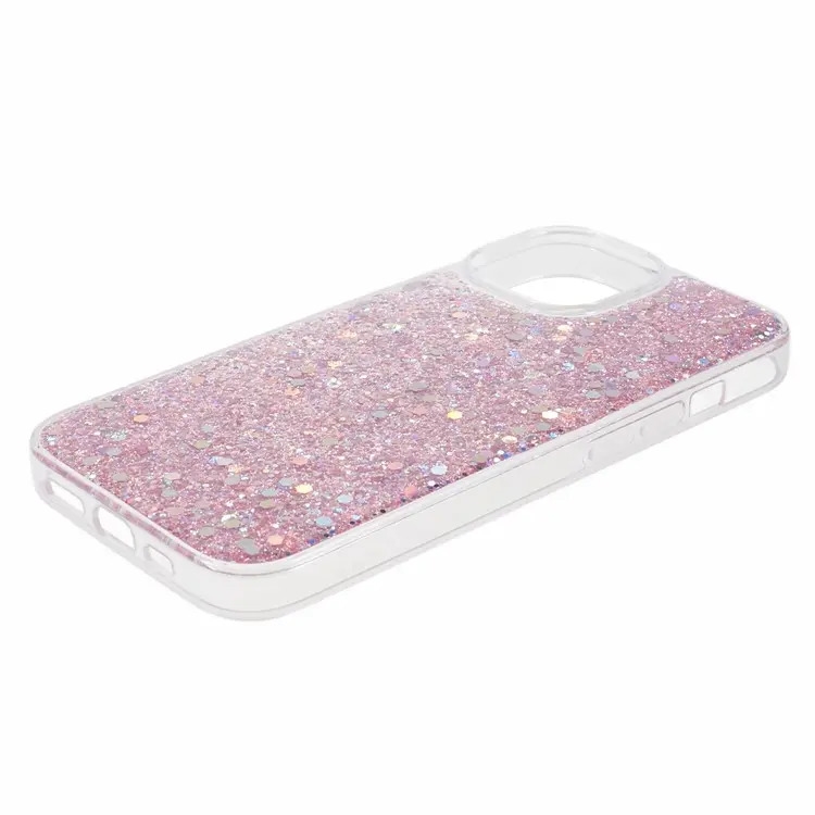 iPhone 15 Plus Glitter Flakes TPU-deksel - Rosa