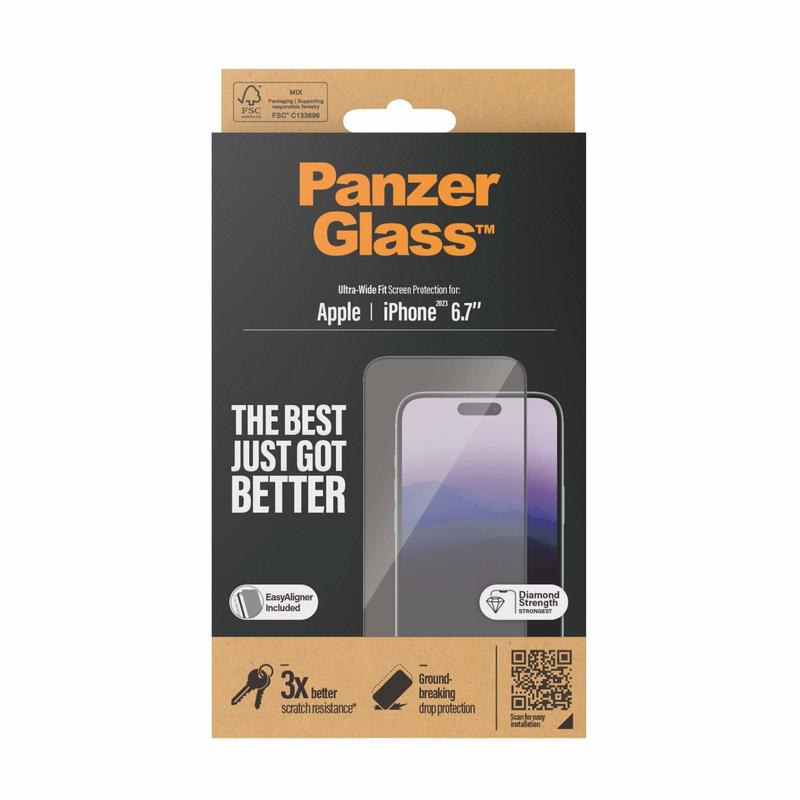 PanzerGlass Ultra-Wide Fit EasyAligner Skjermbeskytter i Herdet Glass til iPhone 15 Plus
