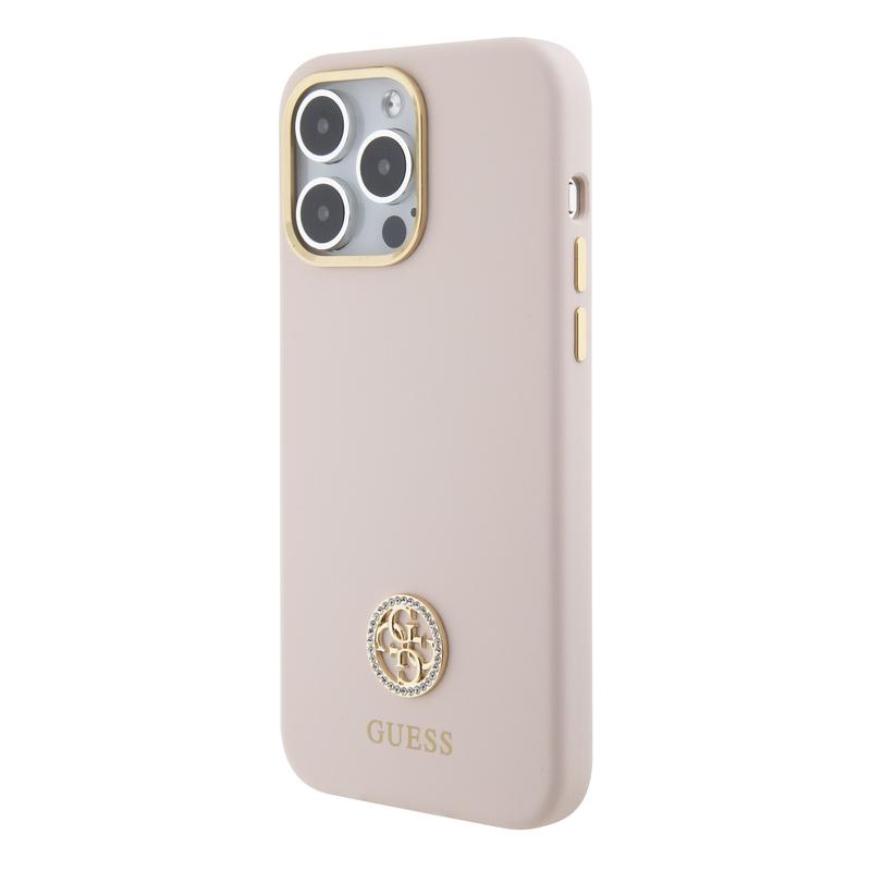 Guess 4G Strass Metal Logo Flytende silikonetui til iPhone 15 Pro Max