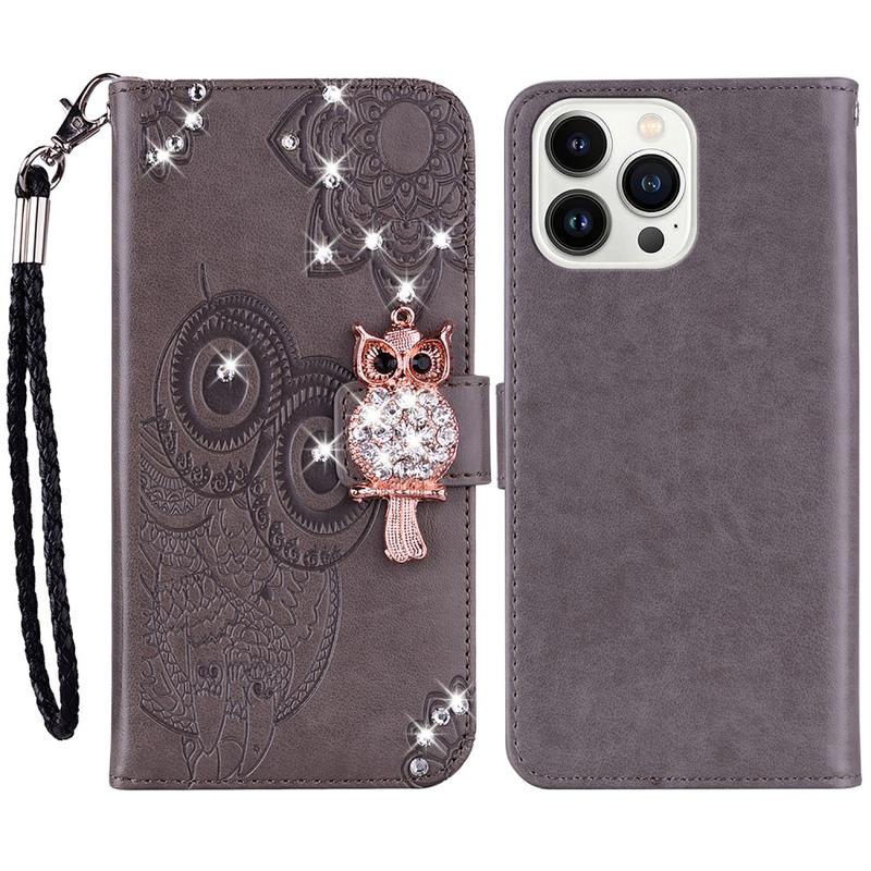 Ugle Rhinestone lommeboketui til iPhone 15 Pro
