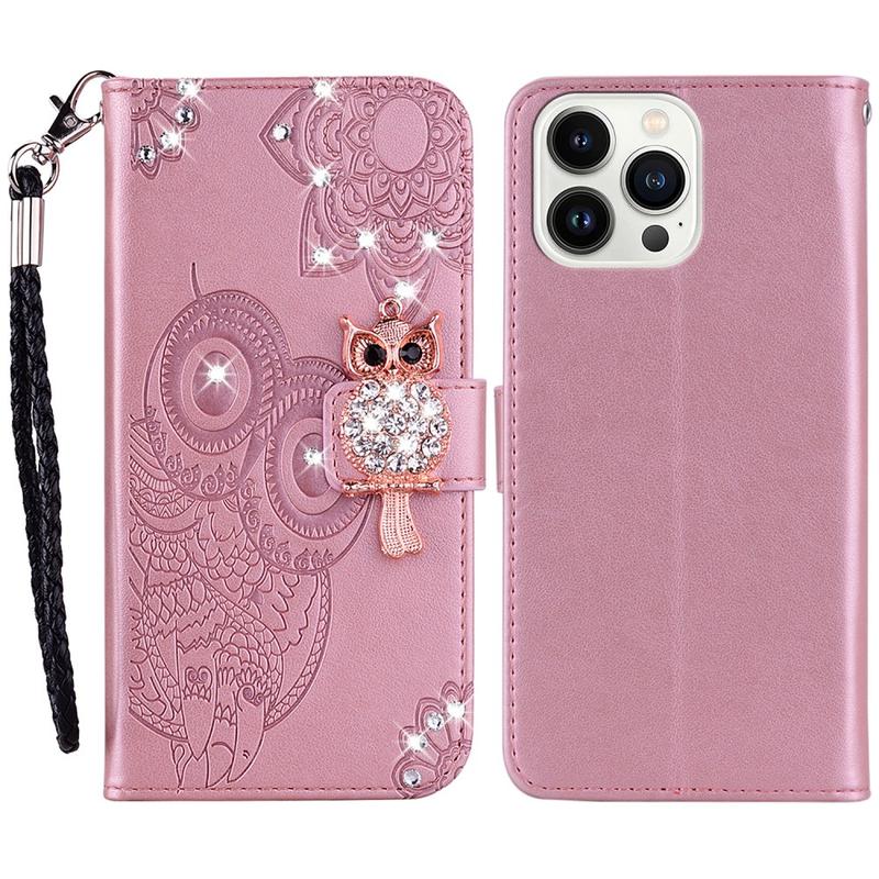 Ugle Rhinestone Lommebok-deksel til iPhone 15 Pro Max