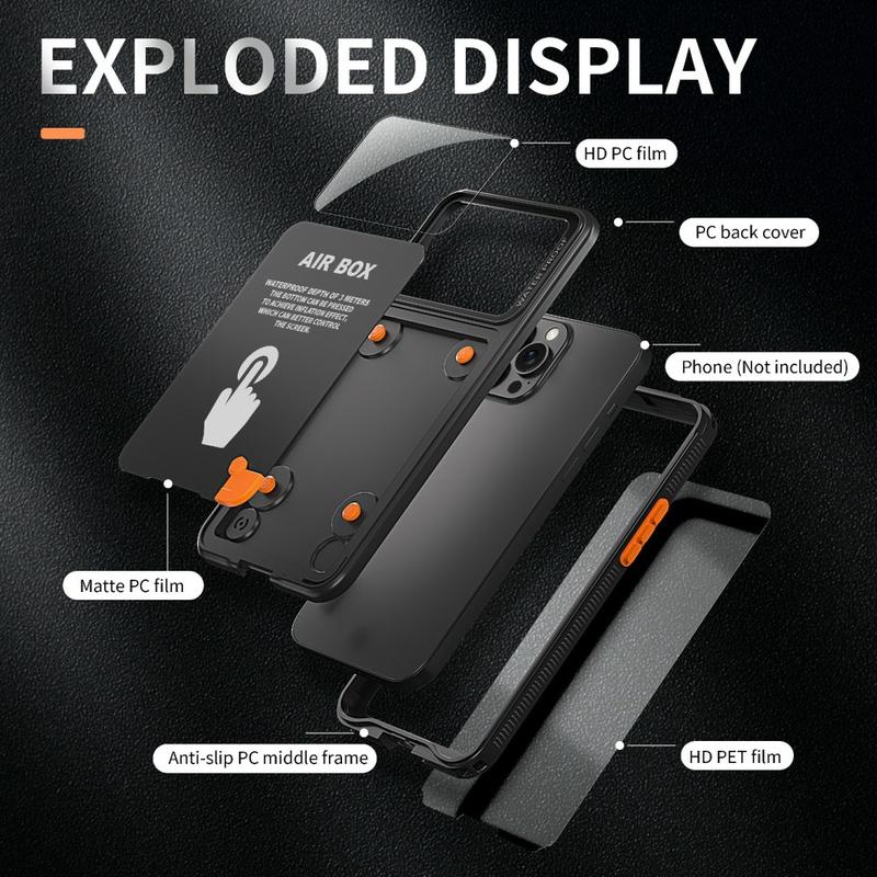 Telefonen må monteres uten ekstra tilbehør som skjermbeskyttere, dekorasjoner eller herdet glass festet til telefonens kropp (for iPhone-installasjonspåminnelse: juster dempeknappen før montering, produktskjermen er ripebestandig, og det er ikke behov for skjermbeskyttere før foringsrøret, da påføring av skjermbeskyttere kan påvirke den vanntette effekten).