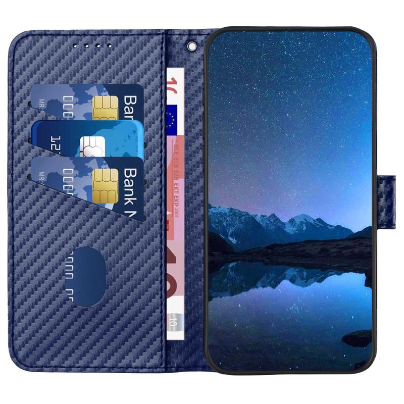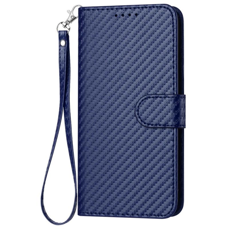 iPhone 16 Premium lommebokveske med stropp - karbonfiberstruktur - Karbonblå