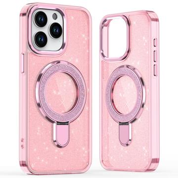 iPhone 15 Pro Glitter Hybrid-deksel med kickstand - MagSafe-kompatibel - Rosa