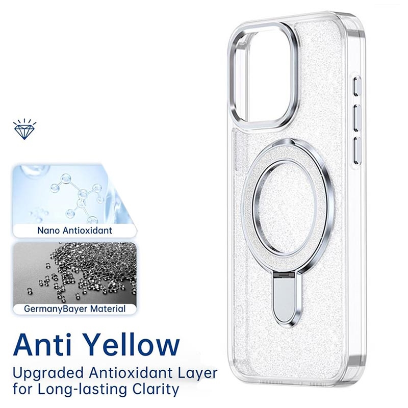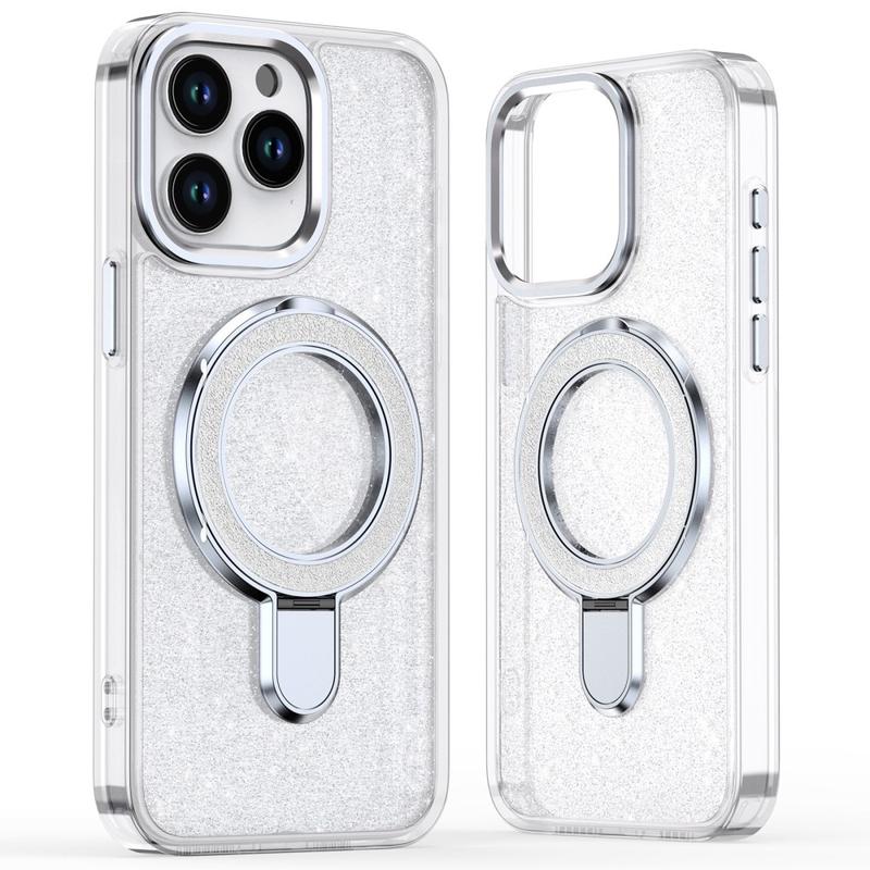 Med iPhone 15 Pro glitterdeksel får du stil og beskyttelse sammen, og det kombinerer elegant glitter med pålitelig holdbarhet i hverdagen. Dette etuiet er laget av materialer av høy kvalitet og utstyrt med en innebygd metallringstøtte, slik at telefonen din er sikker, funksjonell og moteriktig hele dagen.