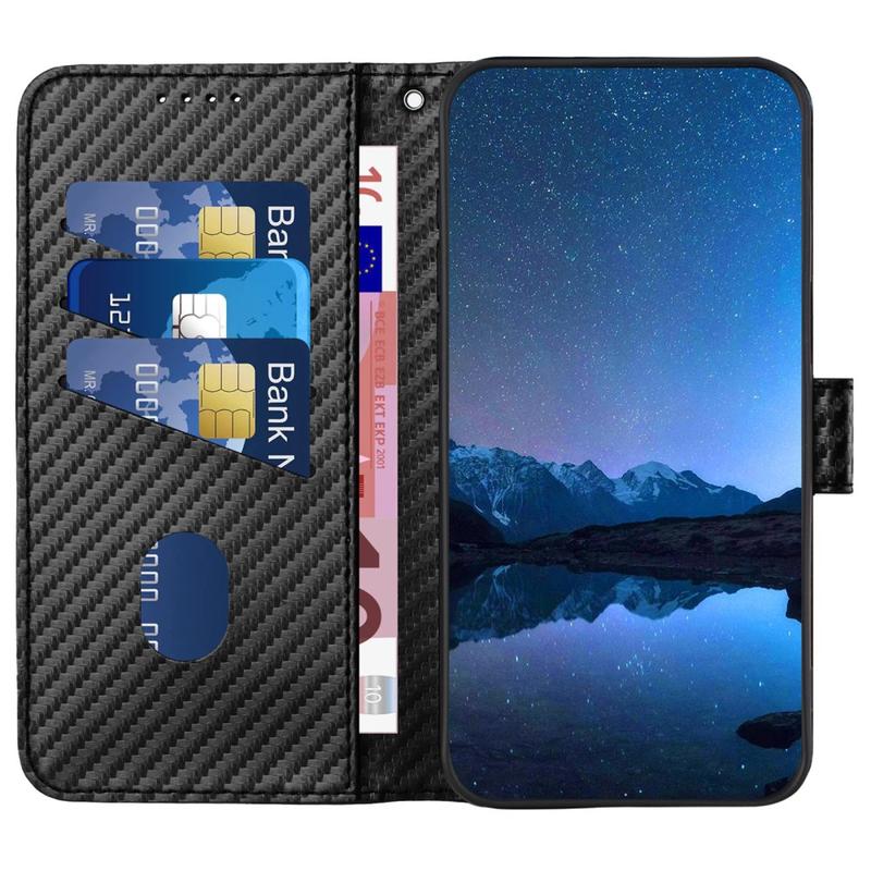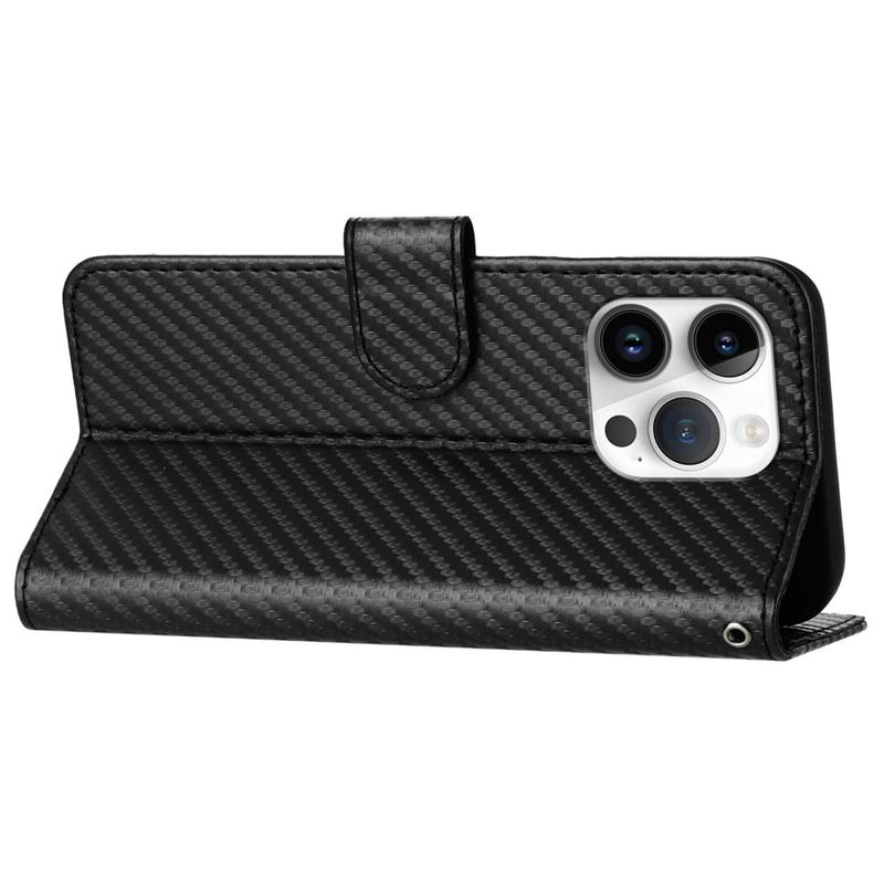 Premium lommebokveske med stropp til iPhone 15 Pro Max - karbonfiberstruktur