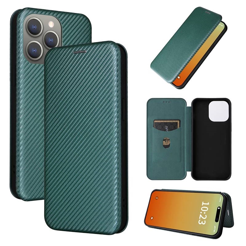 - Karbonfiber teksturert flip-deksel til iPhone 15 Pro