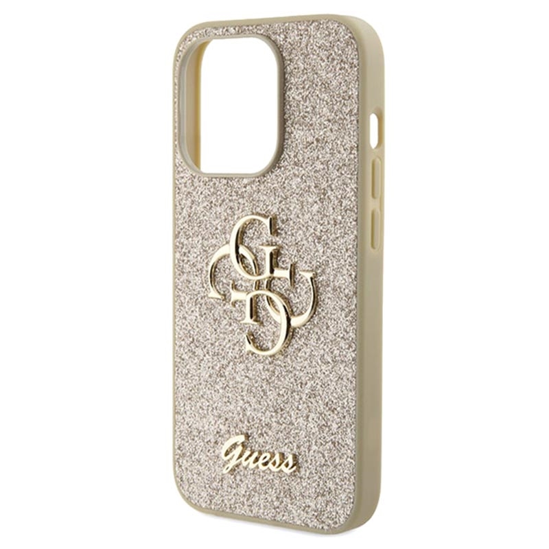 - Spektakulært Guess Fixed Glitter 4G Metal Logo deksel til iPhone 15 Pro