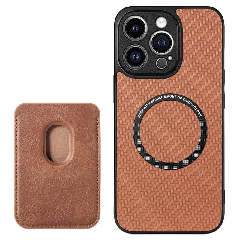 Magnetisk Deksel med Kortlomme til iPhone 15 Pro - Karbonfiber