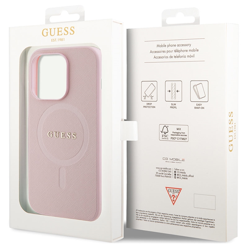 Guess Saffiano Hybrid-deksel til iPhone 15 Pro Max - MagSafe-kompatibelt