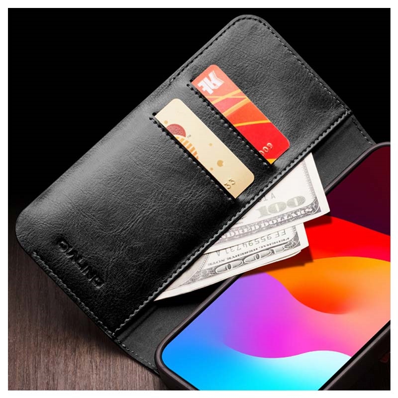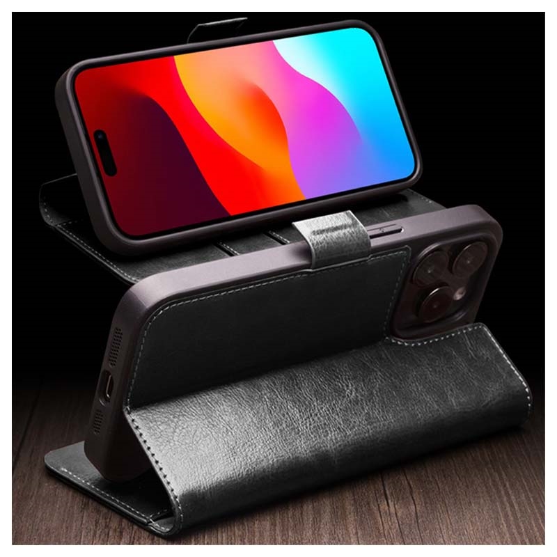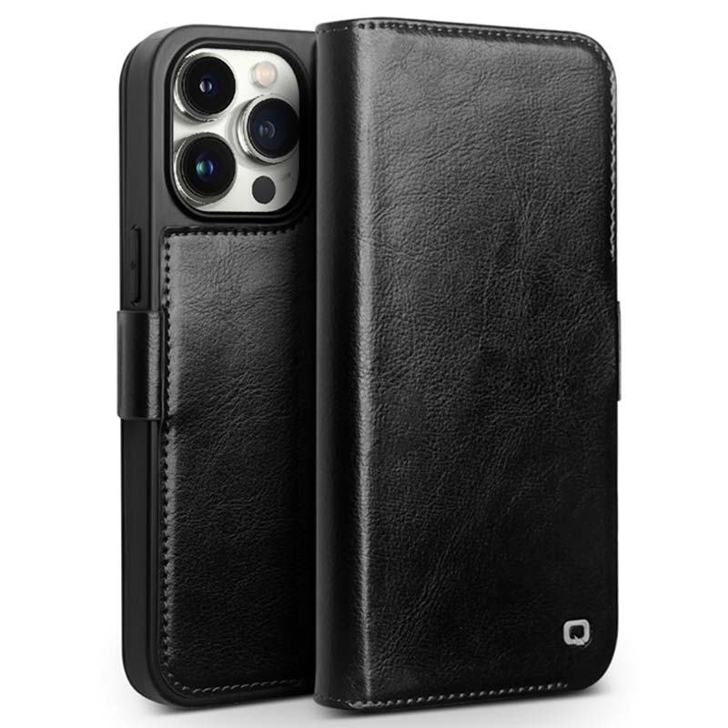 iPhone 15 Pro Max Qialino Classic Lommebok-deksel I Lær - Svart