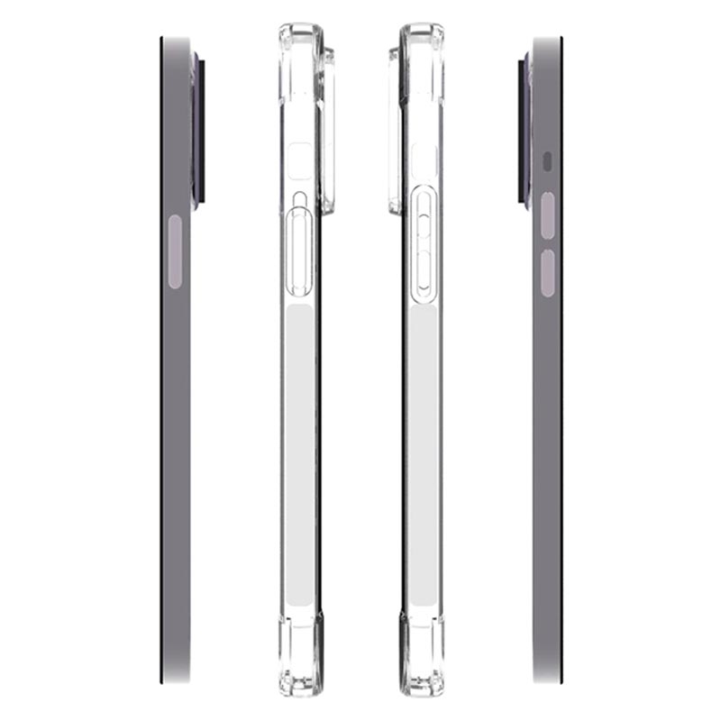 Og det er ikke alt! Selv om det støtsikre dekselet av termoplastisk polyuretan skaper en utmerket beskyttelse til din iPhone 15 Pro Max, så skjuler det ikke den naturlige skjønnheten, takket være den fullstendig gjennomsiktige designen. Fire forsterkede hjørner skaper en varig barriere som vil hindre din iPhone 15 Pro Max mot å bli skadd.