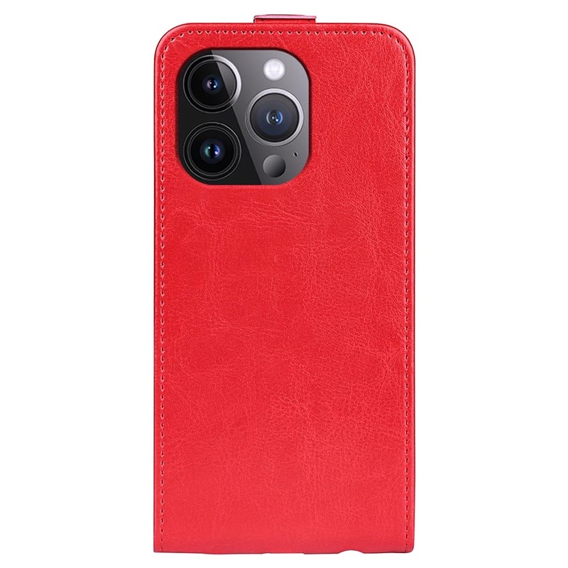 - Elegant vertikalt flip-etui spesifikt designet for iPhone 15 Pro Max