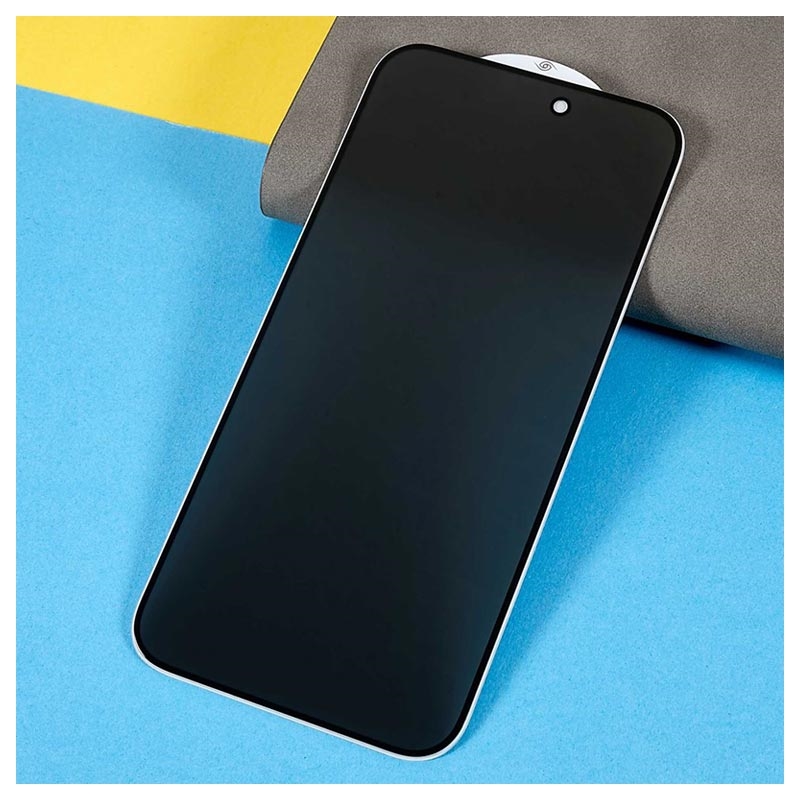 Ved å velge denne iPhone 15 Pro Full Coverage Side Glue Tempered Glass Film Silk Printing Anti-Spy Screen Protector, investerer du i en høykvalitets beskyttelse som holder enheten din sikker og privat.