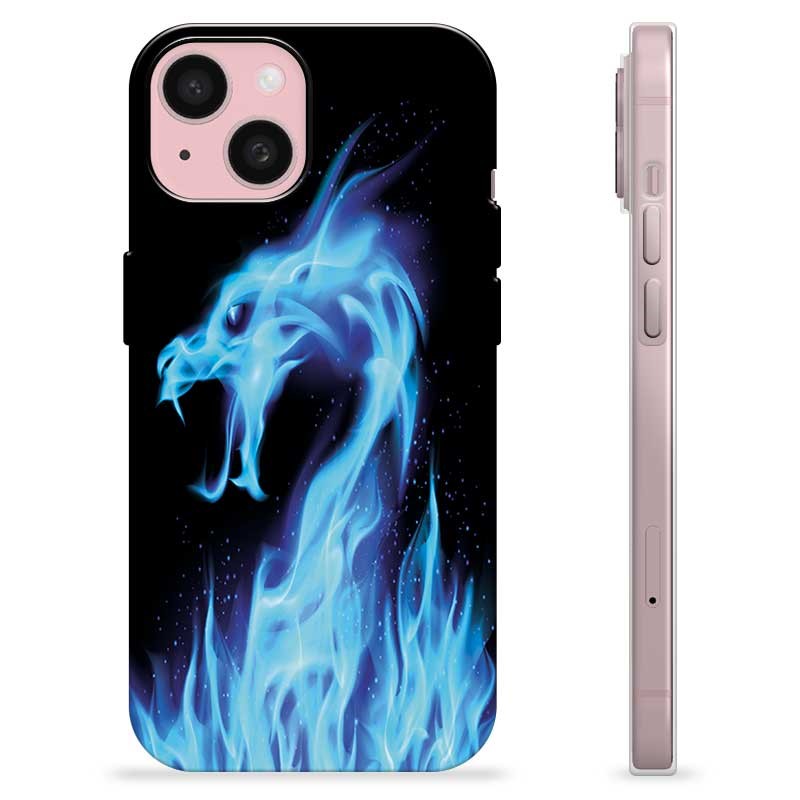 iPhone 15 TPU-deksel - Blå Flamme Drage