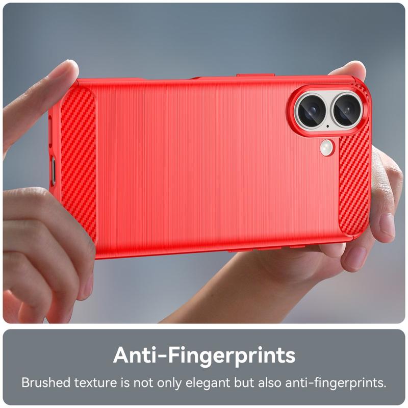 iPhone 16 Børstet TPU Deksel - Karbonfiber - Rød