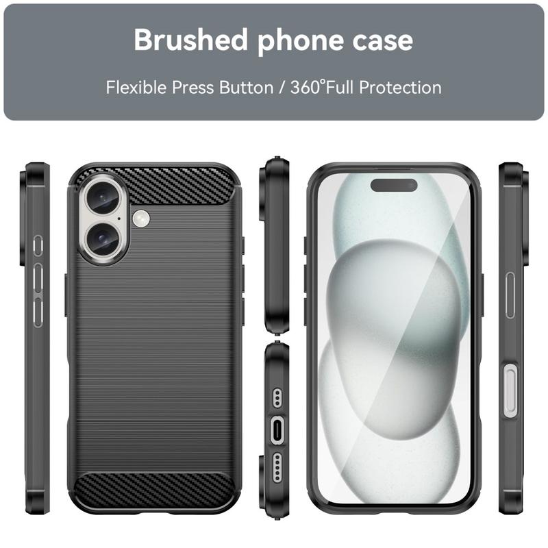 Børstet TPU Deksel til iPhone 16 - Karbonfiber