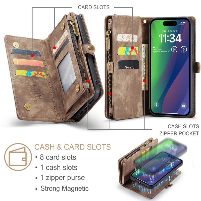 Gjør dagen din effektiv med Caseme 008 2-i-1 iPhone 16 lommebok-deksel.