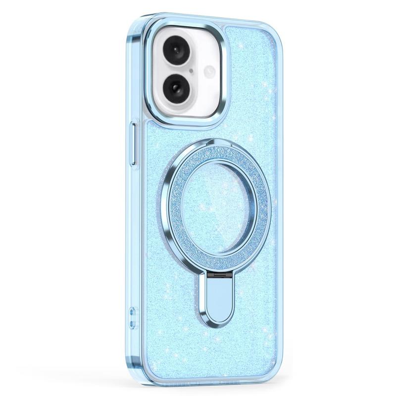 iPhone 16 Glitter Hybrid-deksel med kickstand - MagSafe-kompatibel - Blå