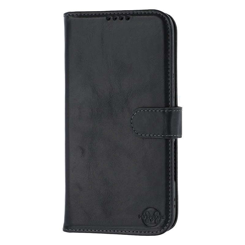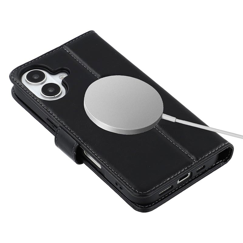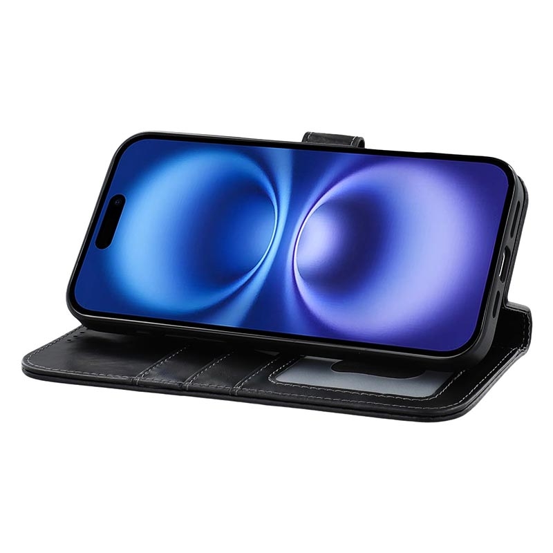 MyTPhone CardMate Premium lommebokveske i lær for iPhone 16 - stativfunksjon, kortholder, støtte for trådløs lading, 2x skjermbeskytter