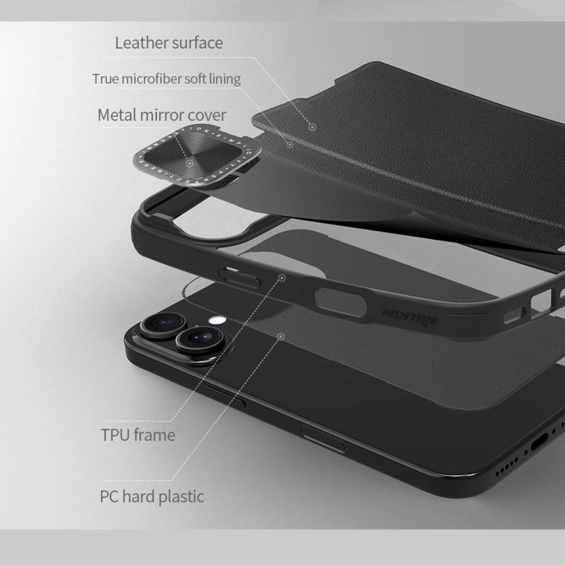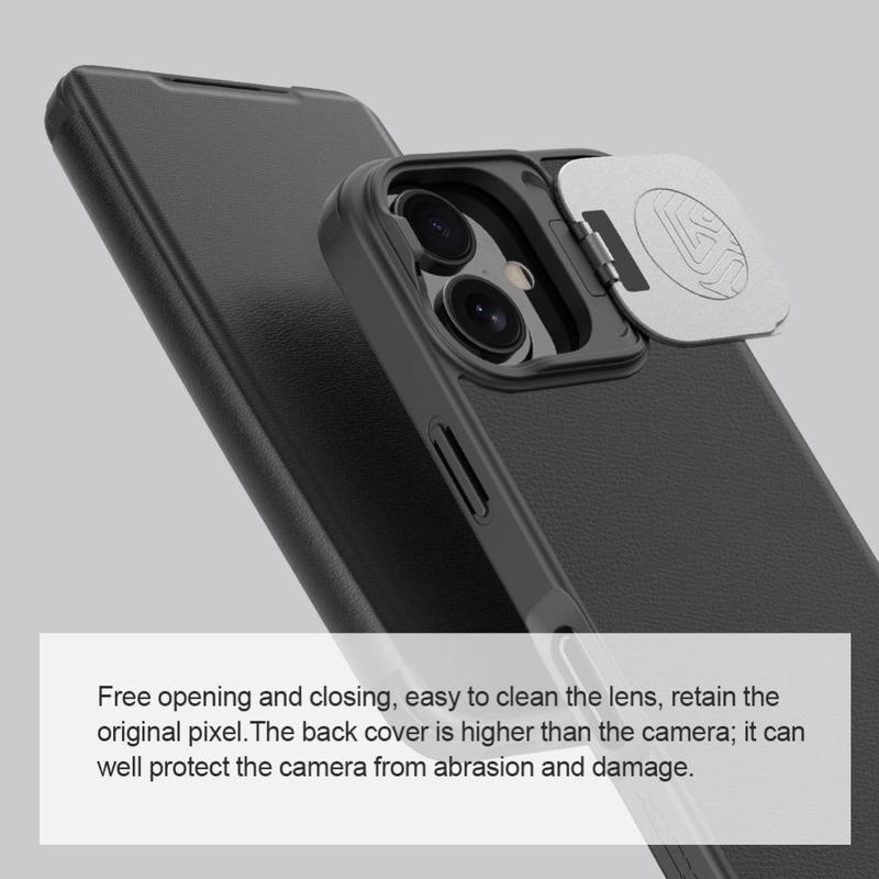 Nillkin Qin Prop Flip-deksel for iPhone 16 - med beskyttelse av kameralinsen