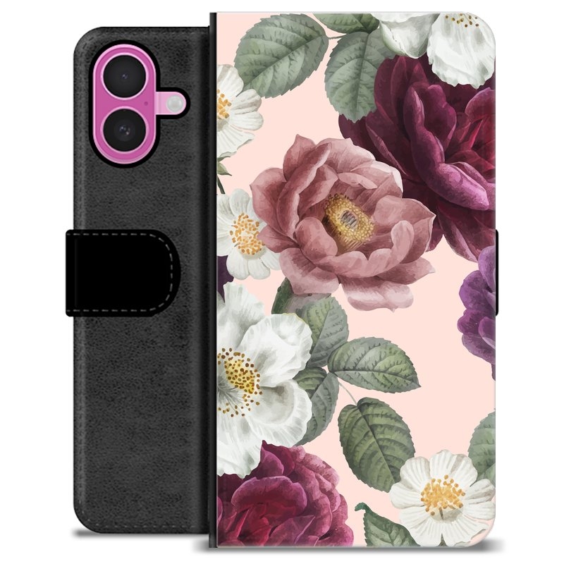 iPhone 16 Plus Premium Lommebok-deksel - Romantiske Blomster