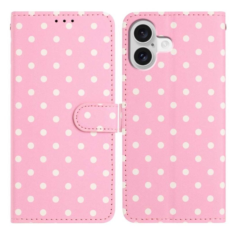 Lommebokveske med prikkmønster til iPhone 16 Plus - elegant og funksjonell beskyttelse