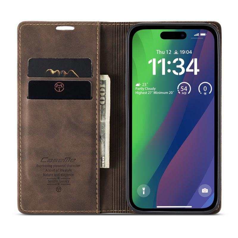 Bær dine viktige kort og kontanter sammen med din iPhone 16 Plus takket være dette Caseme 013-serien lommebok-deksel!